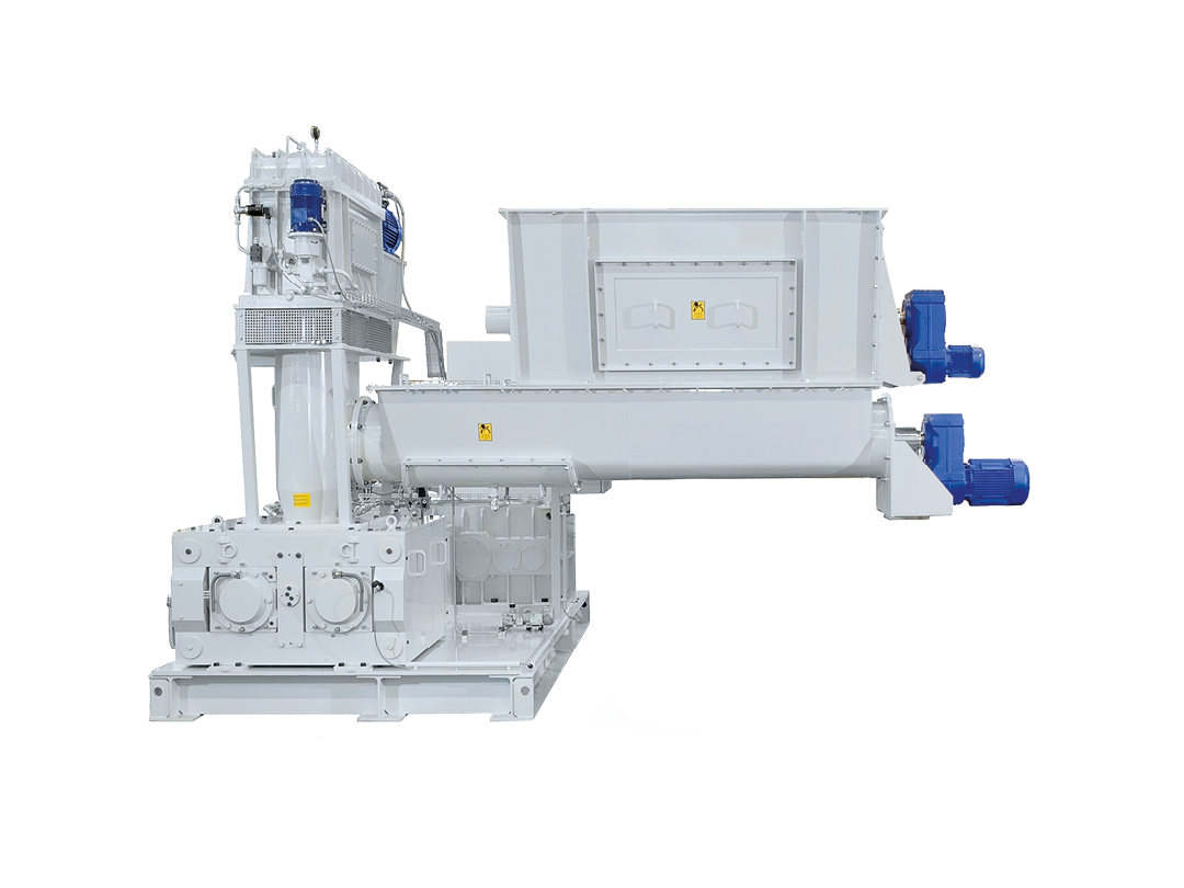 The Kompaktor is designed for the de-aeration of talc (densification). A high bulk density without creation of hard spots will be achieved during the densification process. The powder will be fed into a large silo above a horizontal screw. An agitator or vibration nozzles above the screw prevent any bridging of the light talc powder. The horizontal screw has a vacuum de-aeration system for increasing the efficiency of the screw and increasing the throughput of the Kompactor. The talc will be compacted to soft flakes in the roller gap of the Kompaktor. After compaction the material is normally packed into silos or normal bags.